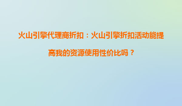 2025-10-14火山引擎代理商折扣:提升资源使用性价比的关键 火山引擎代理商折扣的核心价值 火山引擎作为字节跳动旗下的云计算服务品牌,通过多样化的代理商折扣活动,为企业用户提供了更具性价比的资源使用方案。这类...