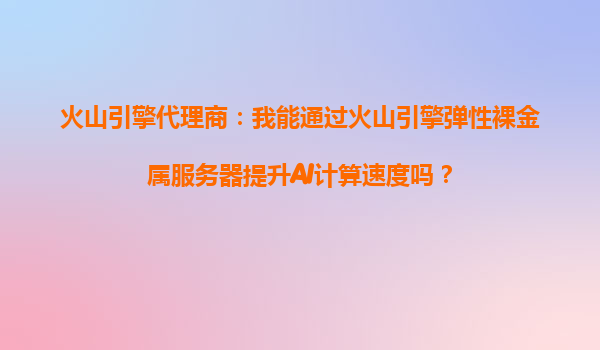 2025-10-12火山引擎代理商:我能通过火山引擎弹性裸金属服务器提升AI计算速度吗? 引言:AI计算的性能挑战 在人工智能(AI)领域,计算速度直接影响模型训练和推理的效率...