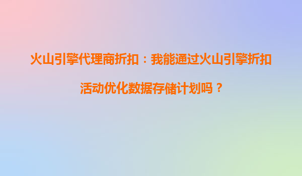 2025-10-11火山引擎代理商折扣:如何通过折扣活动优化数据存储计划? 一、火山引擎的数据存储服务概述 火山引擎作为字节跳动旗下的云服务平台,提供了一系列高效、安全且...