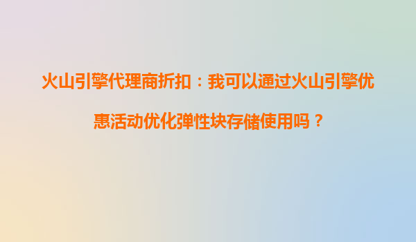 2025-10-11火山引擎代理商折扣:如何通过优惠活动优化弹性块存储使用 火山引擎弹性块存储的核心优势 火山引擎的弹性块存储(EBS)服务以其高性能、高可靠性和灵活扩展能力著称。该服务采用分布式架构设计,支持...