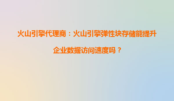 2025-10-11火山引擎代理商:火山引擎弹性块存储能提升企业数据访问速度吗? 一、火山引擎弹性块存储的核心优势 火山引擎作为字节跳动旗下的云服务平台,其弹性块存储(EBS)服务凭借高性能、低延迟和灵活扩...