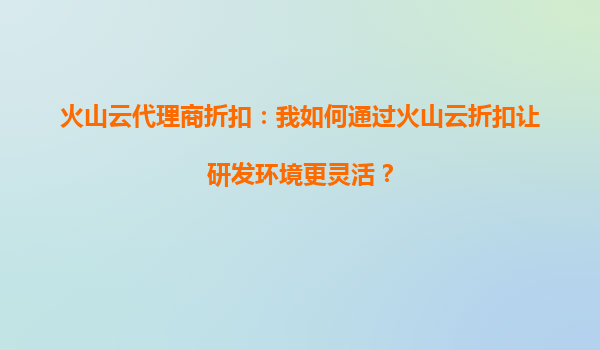 火山云代理商折扣:如何通过火山云折扣让研发环境更灵活? 引言 在当今快速发展的数字化时代,云计算已成为企业研发和业务扩展的核心基础设施。然而,高昂的云服务成本常常成为企业,尤...