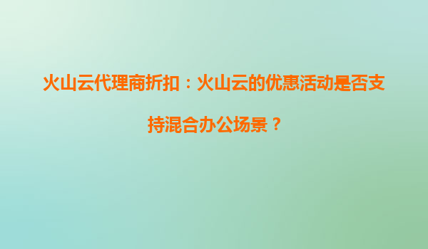 2025-10-06火山云代理商折扣:火山云的优惠活动如何赋能混合办公场景? 一、混合办公场景的挑战与需求 随着远程办公与线下协作的融合,混合办公模式成为企业新常态。然而...