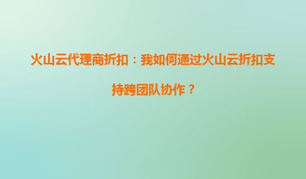 2025-10-05火山云代理商折扣:如何通过火山云折扣支持跨团队协作? 一、火山云的核心价值与跨团队协作需求 在数字化时代,跨团队协作已成为企业高效运营的关键。火山云作...