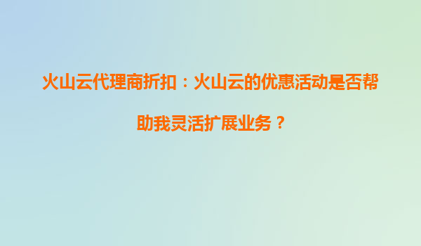 2025-10-05火山云代理商折扣:火山云的优惠活动如何助力企业灵活扩展业务? 一、火山云的核心优势:弹性与稳定性的完美结合 在数字化转型的浪潮中,云计算已成为企业降本...