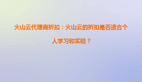 2025-10-05火山云代理商折扣:火山云的折扣是否适合个人学习和实验? 引言 随着云计算技术的快速发展,越来越多的个人开发者和学生开始利用云平台进行学习和实验。火山云...