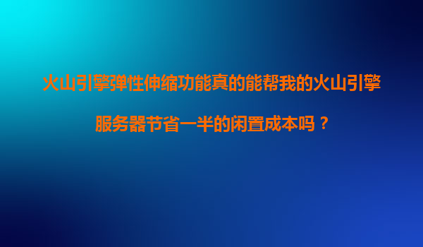 2025-11-14火山引擎弹性伸缩功能真的能帮我的火山引擎服务器节省一半的闲置成本吗? 引言 在云计算时代,企业面临的挑战之一是如何高效管理服务器资源,避免资源浪费。火山引擎提供的弹性伸缩...