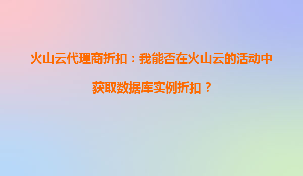 2025-10-03<Talk>火山云代理商折扣:数据库实例优惠不容错过 在数字化转型浪潮中,企业上云已成为必然趋势。作为国内领先的云计算服务提供商,火山云凭借其强大的技术实力和丰富的产品矩阵,为企业用户提供稳定、高效、安...