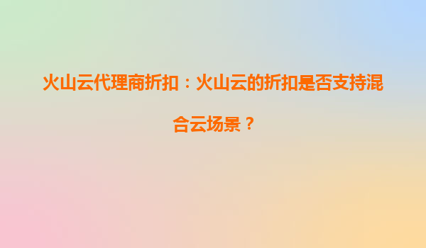2025-10-02火山云代理商折扣:火山云的折扣是否支持混合云场景? 一、火山云的核心优势与混合云场景适配性 火山云作为字节跳动旗下的云计算服务品牌,凭借其弹性计算、全球加速网络和AI能力集成等核心优势,已成为企...