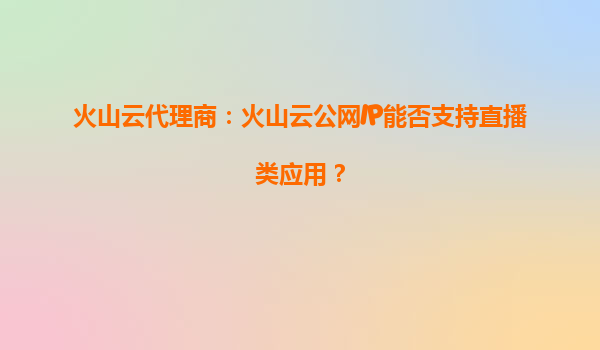 2025-10-02火山云代理商:火山云公网IP能否支持直播类应用? 一、火山云公网IP的核心优势 火山引擎作为字节跳动旗下的云计算服务品牌,其公网IP服务依托全球覆盖的高质量网络基础设施,具备以下核心优势: ...