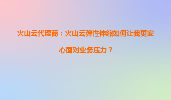 2025-10-02火山云代理商:我能否设置火山云弹性伸缩的扩展上限? 引言 在周末的清晨,>在云计算时代,弹性伸缩(AutoScaling)成为企业应对业务并发访问、优化资源利用...