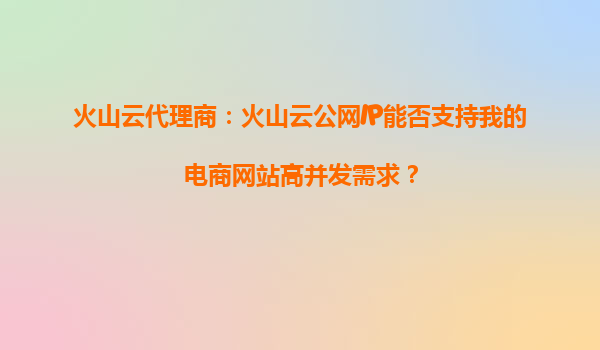 2025-09-30火山云代理商:火山云公网IP能否支持我的电商网站高并发需求? 一、火山云公网IP的核心优势 火山引擎作为字节跳动旗下的云计算服务品牌,其公网IP服务具备以下核心优势: 高可用性:...