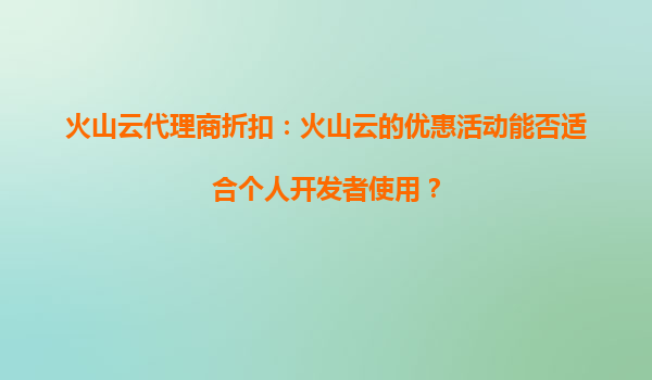 2025-09-30火山云代理商折扣:火山云的优惠活动能否适合个人开发者使用? 一、火山云的优势概述 火山云作为字节跳动旗下的云计算服务平台,凭借其强大的技术支持和丰富的资源生态,逐渐成为云计算领域的重要...