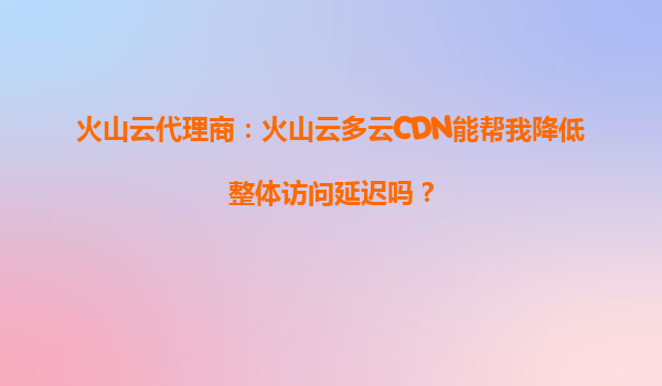 2025-09-30火山云代理商:火山云多云CDN如何降低整体访问延迟? 一、访问延迟的挑战与多云CDN的价值 在数字化时代,用户对网站或应用的访问速度要求越来越高,延迟每增加100毫秒都可能导致用户...