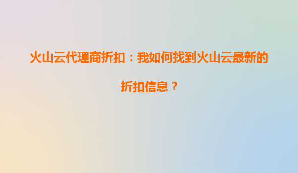 2025-09-30火山云代理商折扣:火山云的折扣是否能让我节省长期使用的成本? 在当今数字化时代,云计算服务已成为企业运营不可或缺的一部分。无论是初创公司还是大型企业,都需要高效、稳定且经济的云服务来支持业务发展。...