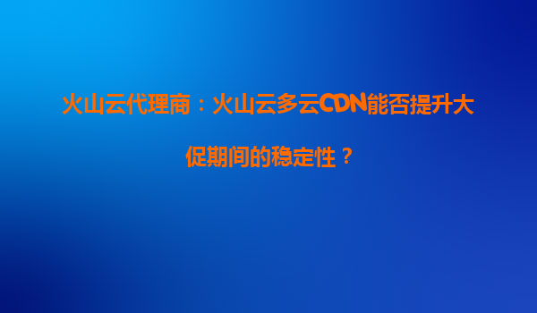 2025-09-30火山云代理商:火山云多云CDN如何提升大促期间的稳定性? 一、大促期间的挑战与稳定性需求 电商大促、游戏上线、直播活动等高并发场景下,流量激增可能导致服务...