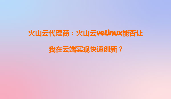 2025-09-30火山云代理商:火山云veLinux能否让我在云端实现快速创新? 引言 在数字化转型的浪潮中,云计算已成为企业快速创新的核心驱动力。火山引擎作为字节跳动旗下的云服务平台,凭借其强大...