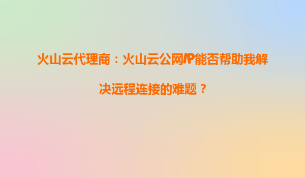 火山云代理商:火山云公网IP如何解决远程连接难题? 一、远程连接的常见挑战 在数字化转型的浪潮中,远程办公、跨地域协作已成为企业常态。然而,许多企业在搭建远程连接...