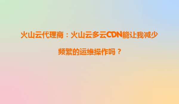 2025-09-30火山云代理商:火山云多云CDN能让我减少频繁的运维操作吗? 在当今数字化时代,企业对于网络性能和稳定性的要求越来越高。无论是电商平台、在线教育,还是游戏和视频流媒体,都需要快速、稳定的内容分...