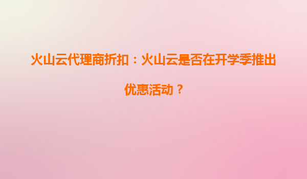 2025-09-28火山云代理商折扣:开学季优惠活动来袭,助力教育行业数字化升级 一、火山云开学季优惠活动:限时折扣与多重福利 随着开学季的到来,火山云为教育行业用户及代...