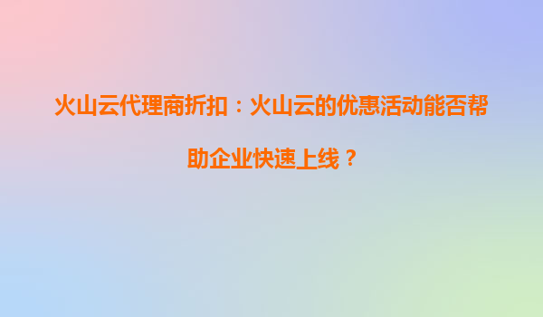 2025-09-28火山云代理商折扣:火山云折扣活动会影响计费透明度吗? 引言 随着云计算服务的普及,越来越多的企业选择将业务迁移到云端。火山云作为国内领先的云计算服务提...