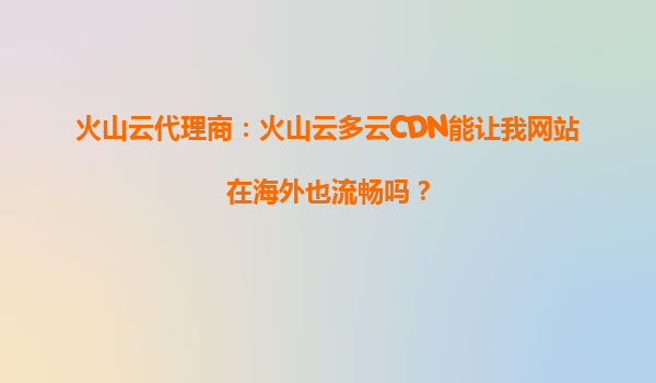 2025-09-28火山云代理商:火山云多云CDN能让我网站在海外也流畅吗? 一、海外访问的痛点与CDN的核心价值 随着全球化业务的发展,许多企业的网站需要面向海外用户提供服务。然而,地理距离带来的网...