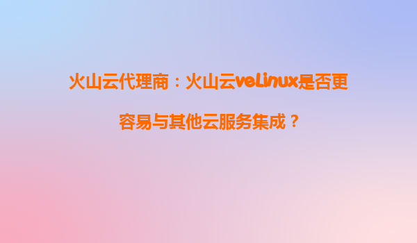 2025-09-27火山云代理商:火山云veLinux是否更容易与其他云服务集成? 在云计算领域,服务之间的集成能力是企业选择云平台的重要考量因素之一。作为火山引擎推出的一款企业级Linux操作系统,veLinux以其卓越的性能和安全特...