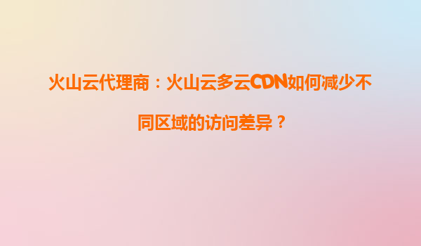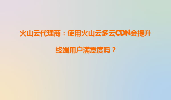 2025-09-27火山云代理商:使用火山云多云CDN如何提升终端用户满意度? 终端用户体验的关键:CDN的重要性 在数字化时代,网页加载速度、视频流畅度、应用响应时间直接影响用户留存率与满意度...