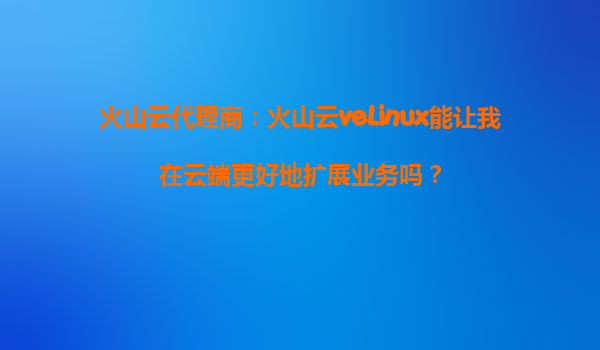 2025-09-27火山云veLinux:云端扩展业务的智能之选 什么是火山云veLinux? 火山云veLinux是火山引擎推出的高性能云服务器操作系统,专为云计算环境优化设计。作为火山云代理商的明星产品,它基于稳定的Linux...