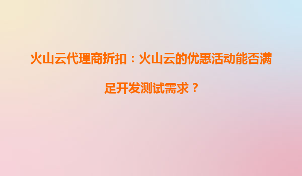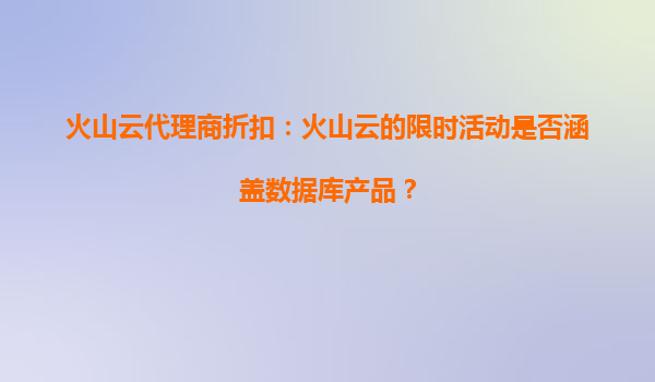 2025-09-27火山云代理商折扣:火山云的限时活动是否涵盖数据库产品? 一、火山云的核心优势 火山云作为字节跳动旗下的云计算服务品牌,依托强大的技术实力与全球化的基础设施,为企业提供稳定、高效、安全的云服...