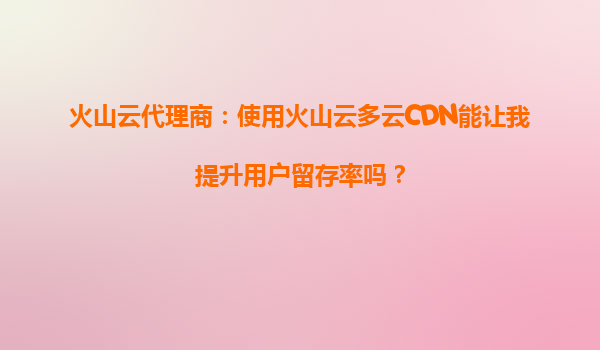 2025-09-27火山云代理商:使用火山云多云CDN如何提升用户留存率? 一、用户留存率的关键影响因素 在数字化时代,用户留存率是衡量产品成功与否的核心指标之一。影响用户留存率的因素众多,其中网站...