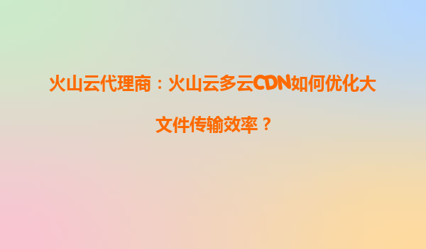 2025-09-26火山云多云CDN如何优化大文件传输效率? 引言:大文件传输的挑战与机遇 在数字化时代,大文件传输已成为企业运营中不可或缺的一部分,无论是视频内容分发、游戏更新包发布,还是大型软件安装包的推送,都面...