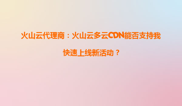 2025-09-26火山云代理商:火山云多云CDN如何助力企业快速上线新活动? 一、快速上线的核心挑战 在数字化营销时代,企业新活动上线往往面临突发流量压力、全球访问延迟、资...