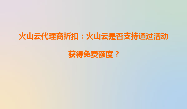 2025-09-26火山云代理商折扣:如何通过活动获取免费额度及代理优势解析 一、火山云是否支持通过活动获得免费额度? 火山云作为字节跳动旗下的云计算服务品牌,为了吸引新用户和回...