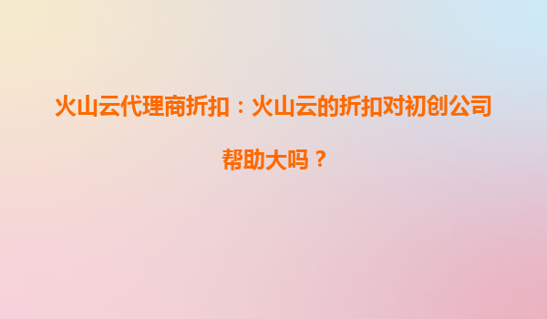 2025-09-26火山云代理商折扣:初创企业的“加速器” 引言 在数字化浪潮中,云计算已成为企业发展的基础设施。然而,对资金有限的初创公司而言,高昂的IT成本往往是绊脚石。火山云通过代理商提供的折扣政策,...