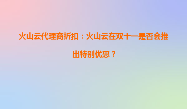 2025-09-25火山云代理商折扣:双十一特别优惠来袭,企业上云的最佳时机 一、火山云双十一优惠前瞻:代理商专属折扣 随着双十一购物狂欢节的临近,火山云作为国内领先的云...