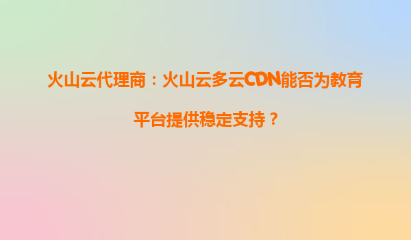 2025-09-25火山云代理商:火山云多云CDN能否为教育平台提供稳定支持? 引言:教育行业的数字化挑战 随着在线教育的快速发展,教育平台对网络稳定性和内容分发的需求日益增长。视频直播、课件下载、...