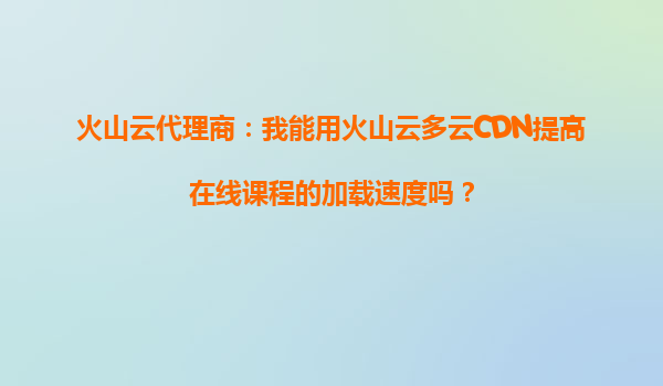 2025-09-25火山云代理商:如何用火山云多云CDN提升在线课程的加载速度? 一、在线课程加载速度的重要性 在数字化教育快速发展的今天,在线课程已成为学习的主流方式之一。...