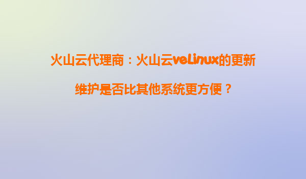 2025-09-25火山云代理商:火山云veLinux的更新维护是否比其他系统更方便? 引言 在云计算和服务器管理领域,操作系统的选择对企业的运维效率、安全性和成本控制至关重要。...