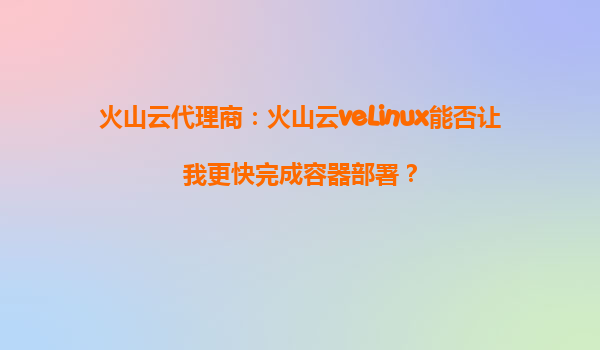 2025-09-25火山云代理商:火山云veLinux能否让我更快完成容器部署? 引言:容器化部署的挑战与机遇 在云计算和DevOps的浪潮下,容器化技术已成为企业快速交付应用的核心工...