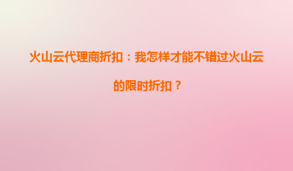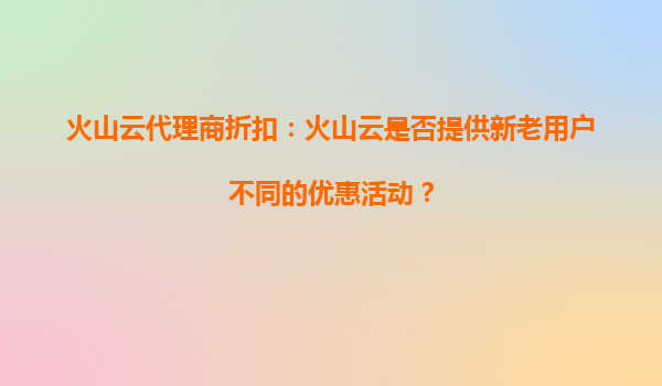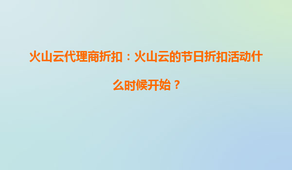 2025-09-25火山云代理商折扣:节日优惠活动即将开启,助力企业高效上云 火山云节日折扣活动时间 火山云作为国内领先的云计算服务提供商,每年都会在重要节日期间推出力度空前的代理商折扣活动...