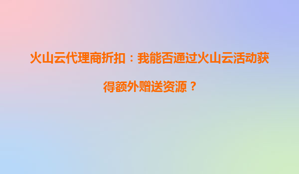 2025-09-25火山云代理商折扣:我能否通过火山云活动获得额外赠送资源? 一、火山云的核心优势解析 火山云作为字节跳动旗下的云计算服务品牌,凭借其技术生态和资源整合能力,在弹性计算、存储服务、大数据分析等领域...