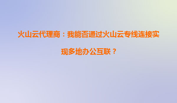 2025-09-23火山云代理商:我能否通过火山云专线连接实现多地办公互联? 1.火山云专线服务的核心优势 火山引擎提供的专线服务(VolcEngineDirectConnect,简称VEDC)是企业级网络互联的解决方案,其核心优势包括: ...