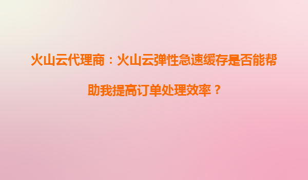 2025-09-23火山云代理商:火山云弹性急速缓存如何助力订单处理效率提升 一、订单处理效率的痛点与缓存技术的价值 在现代电商、金融或游戏行业中,订单处理的实时性与稳定性直接影响用户体验和企业收益。传统数据...