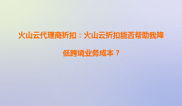 火山云代理商折扣:降低跨境业务成本的智能选择 跨境业务成本痛点与火山云的解决方案 随着全球化进程加速,跨境业务面临网络延迟、数据合规性、基础设施投入三大成本痛点。火山云依托字节跳动全球化技术沉淀,...