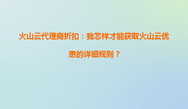 2025-09-22火山云代理商折扣:如何获取优惠详细规则及平台优势解析 一、火山云代理商折扣的获取方式 火山云作为国内领先的云计算服务提供商,为企业和开发者提供了高性能...