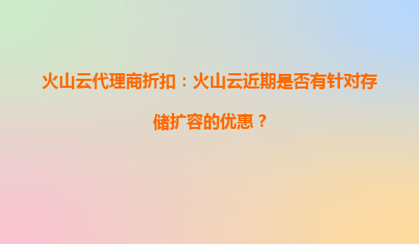 2025-09-21火山云代理商折扣:火山云近期是否有针对存储扩容的优惠? 一、火山云的核心优势分析 作为字节跳动旗下的云计算品牌,火山云凭借技术沉淀和生态资源,为企业用户提供高性能、高可靠的云服务解决方...