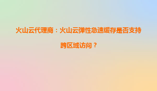 2025-09-19火山云代理商:火山云弹性急速缓存是否支持跨区域访问? 一、火山云弹性急速缓存的核心优势 火山引擎作为字节跳动旗下的云计算服务品牌,其弹性急速缓存服务(R...