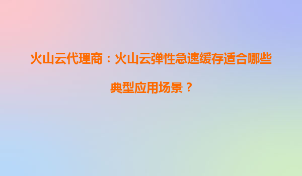 2025-09-20火山云代理商解读:火山云弹性急速缓存的六大典型应用场景及优势 一、火山云弹性急速缓存的核心能力 火山云弹性急速缓存(VolcanoEngineElasticCache)是火...
