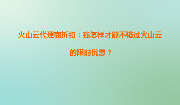 2025-09-20火山云代理商折扣:如何不错过火山云的限时优惠? 在当今数字化时代,云计算服务已成为企业提升业务效率、降低运营成本的重要工具。火山云作为国内领先的云服务提供商,凭借其高性能、高可靠性和灵活的...